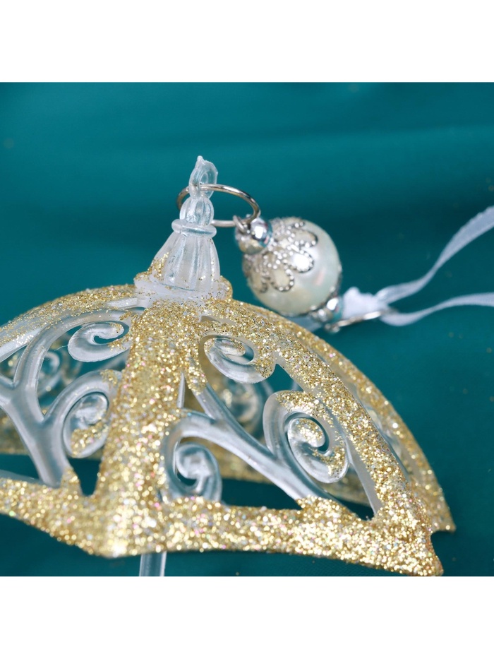Пусть на вашей ёлке раскроется зонт зимнего света. Ёлочная игрушка «Зонтик с полосками» — это необычный акцент новогоднего декора. Прозрачный пластик с золотистыми вкраплениями и резным узором создаёт ощущение лёгкости и праздника — будто в морозном воздухе зависла капля солнца.