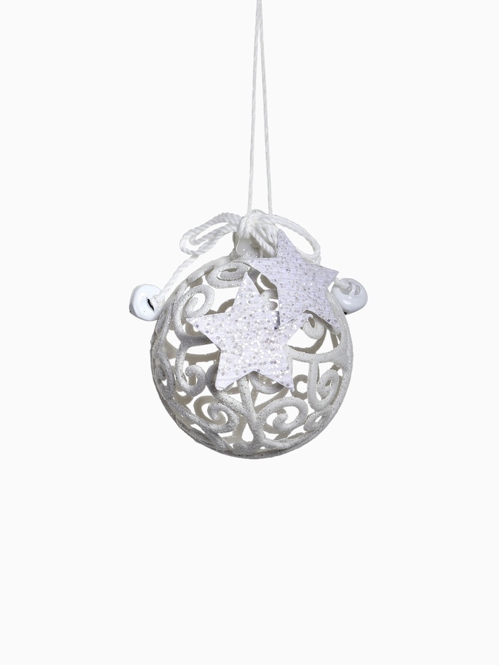 Резной белый шар «Звёздные кружева» — это изысканное украшение для праздничной ёлки. Пластиковая игрушка диаметром 8 см декорирована узором, вдохновлённым зимними мотивами и светом звёзд. Такие детали уместны в классическом, скандинавском, датском и ар-деко стиле, создавая ощущение сдержанного торжества и зимней чистоты.
