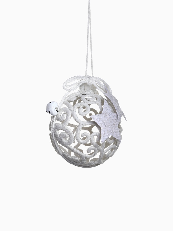 - Однотонный белый шар с резным узором.
