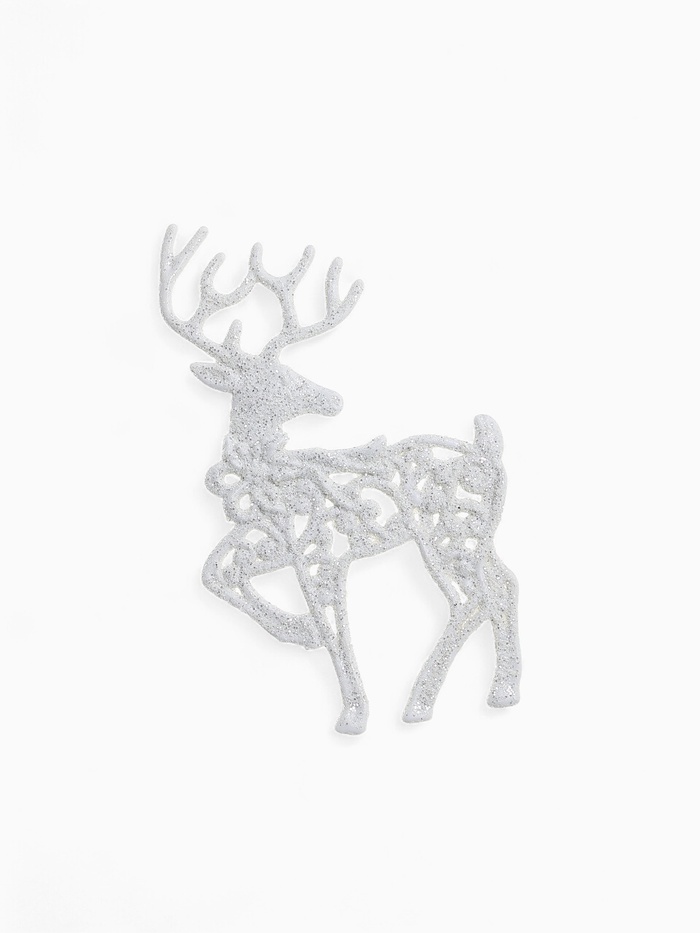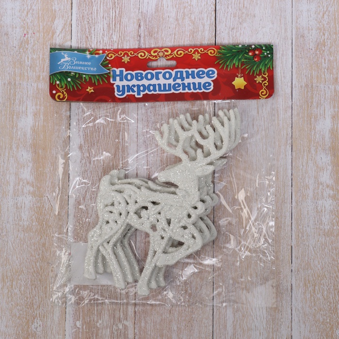 Набор из трёх белых пластиковых ёлочных фигурок в виде резных оленей сочетает классические и скандинавские традиции новогоднего декора. Эти украшения подчёркивают изящество зимней темы и добавляют элегантности праздничной ёлке.