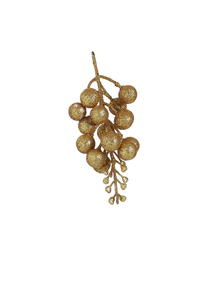 Превратите елку в сияющий шедевр – золотые веточки с ягодами в стиле барокко и ар-деко! Золотые новогодние веточки – набор из 4 игрушек, сочетающих пышность барокко, строгость классики и графичность ар-деко. Их длина – 19 см, что делает акцент заметным, но не перегружает композицию.