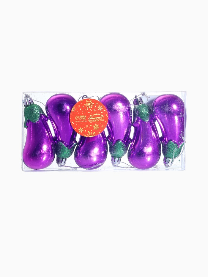 Неожиданный акцент вашего новогоднего праздника. Новогодние игрушки «Баклажан» — это 6 украшений фиолетового цвета, высотой 9,5 см, выполненных из прочного пластика. Игрушки в форме овощей добавляют ёлке стилистическую оригинальность и нестандартное настроение. Дизайн выполнен в духе фьюжн, сочетая природные формы и современный подход к оформлению праздничного интерьера.