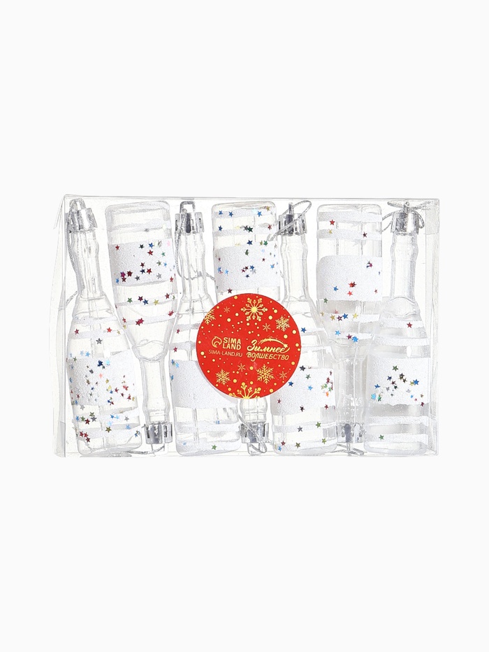 Набор из 6 прозрачных белых ёлочных игрушек в форме бутылочек высотой 11 см станет изящным дополнением к праздничному декору. Лёгкий пластик и рисунок на поверхности создают эффект нежности и воздушности, вписываясь в стили датского минимализма, советской классики и шебби-шик.