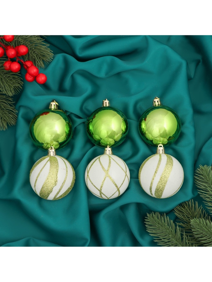 - Диаметр каждого шара составляет 6 см — оптимальный размер для разнообразных ёлочных декораций.