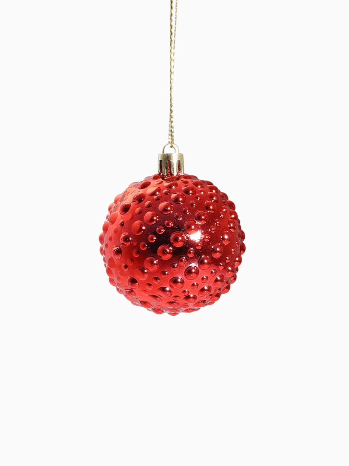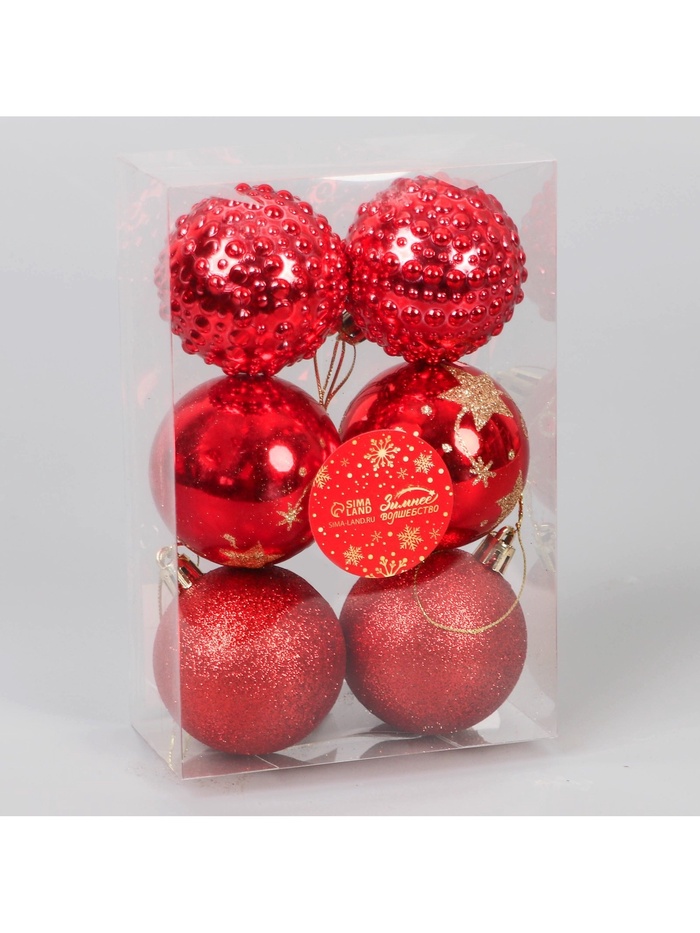 Эти шары станут не просто акцентом на ёлке, но и частью новогодней истории. Звёзды на поверхности создают ощущение ночного неба над зимним городом, а яркий красный фон усиливает праздничное настроение. Такие игрушки легко использовать как основу композиции или как дополнение к уже имеющимся украшениям. Пластик обеспечивает долговечность — они останутся частью вашего праздника на многие годы.