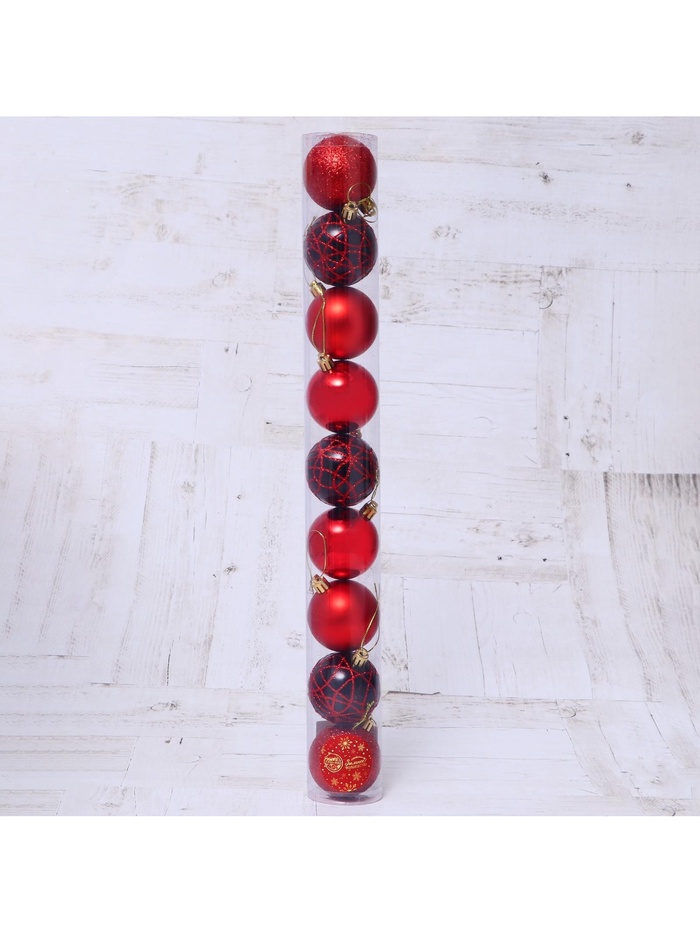 - Комплект из 9 однотонных шаров насыщенного красного цвета.