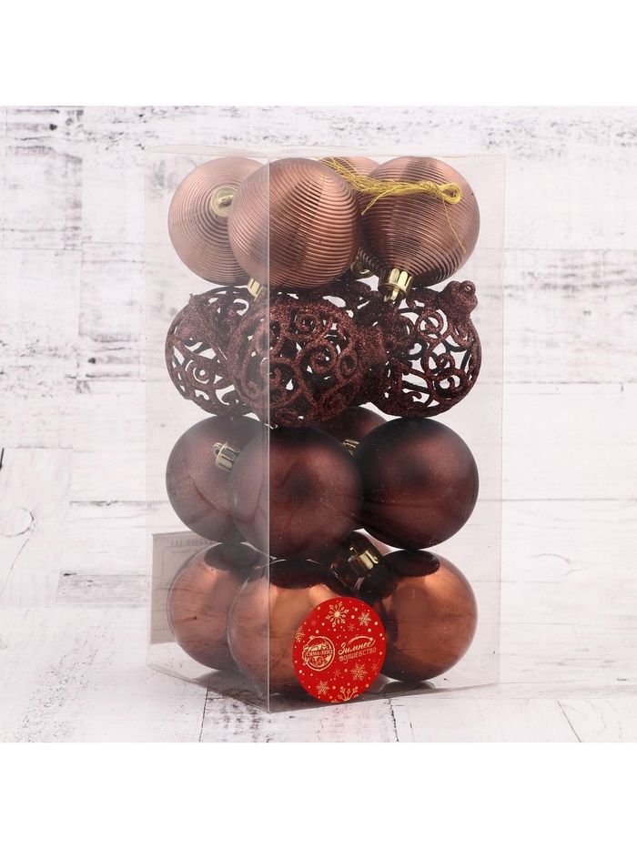 Новогодние шары «Ажурный блеск» — это стильное и необычное украшение для тех, кто любит праздничный минимализм с акцентом на детали. Коричневый цвет и резная поверхность добавляют оформлению объёмности и изысканности, а 16 пластиковых игрушек диаметром 6 см позволяют полностью украсить ёлку или стать её центральным акцентом. Набор идеально вписывается в датский стиль, где важны лаконичность и текстура.