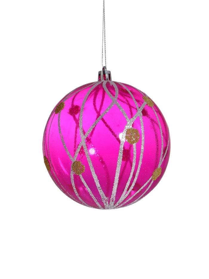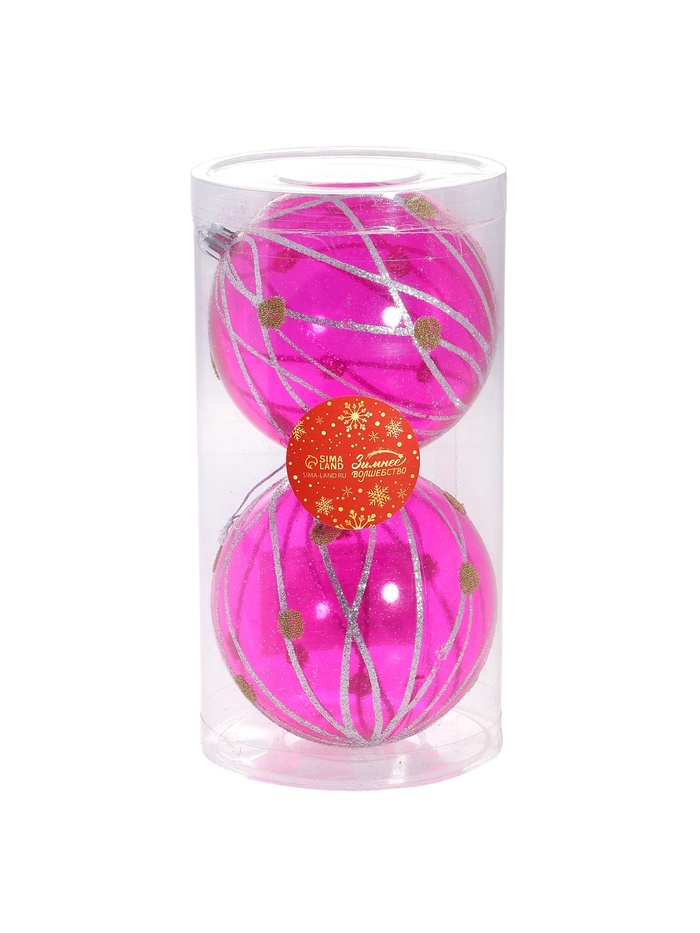 Набор из двух прозрачных сиреневых ёлочных шаров диаметром 10 см сочетает лёгкость пластика с изящным рисунком в стиле фьюжн. Эти украшения придают новогоднему интерьеру лёгкость и современный характер.