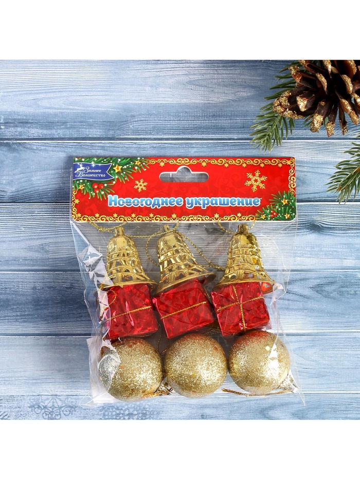 Новогодние игрушки «Гранд» — это праздничный набор для тех, кто любит украшать ёлку с продуманностью и стилем. В комплекте 9 пластиковых элементов: шары, колокольчики и имитация подарков в красно-золотистой гамме с однотонной поверхностью. Это решение в духе новогоднего барокко подчеркнёт торжественность момента и добавит дереву настроения праздника.