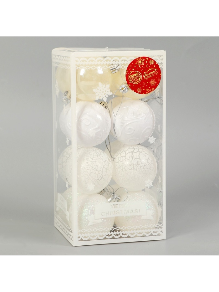 Этот набор создан для тех, кто ценит эстетику без лишнего блеска. Белые шары с текстурным рисунком не кричат о себе, но задают тон всему оформлению. Они подходят как для первого украшения ёлки, так и для тех, кто каждый год добавляет что-то новое в свою праздничную традицию.