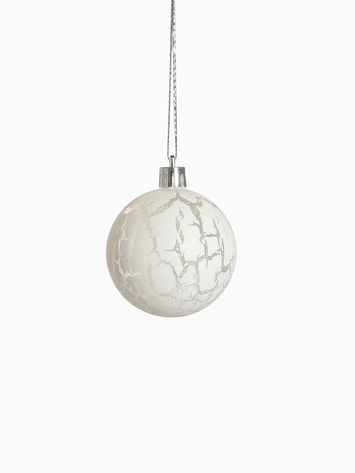 Пластиковые новогодние шары белого цвета с узором «трещинки» — это стильное и лаконичное решение для украшения ёлки в преддверии праздника. Игрушки диаметром 6 см выполнены в классической форме и подходят под разные стили: от строгой классики до датского минимализма. Набор из 16 элементов предлагает достаточно игрушек для создания цельной и гармоничной композиции.