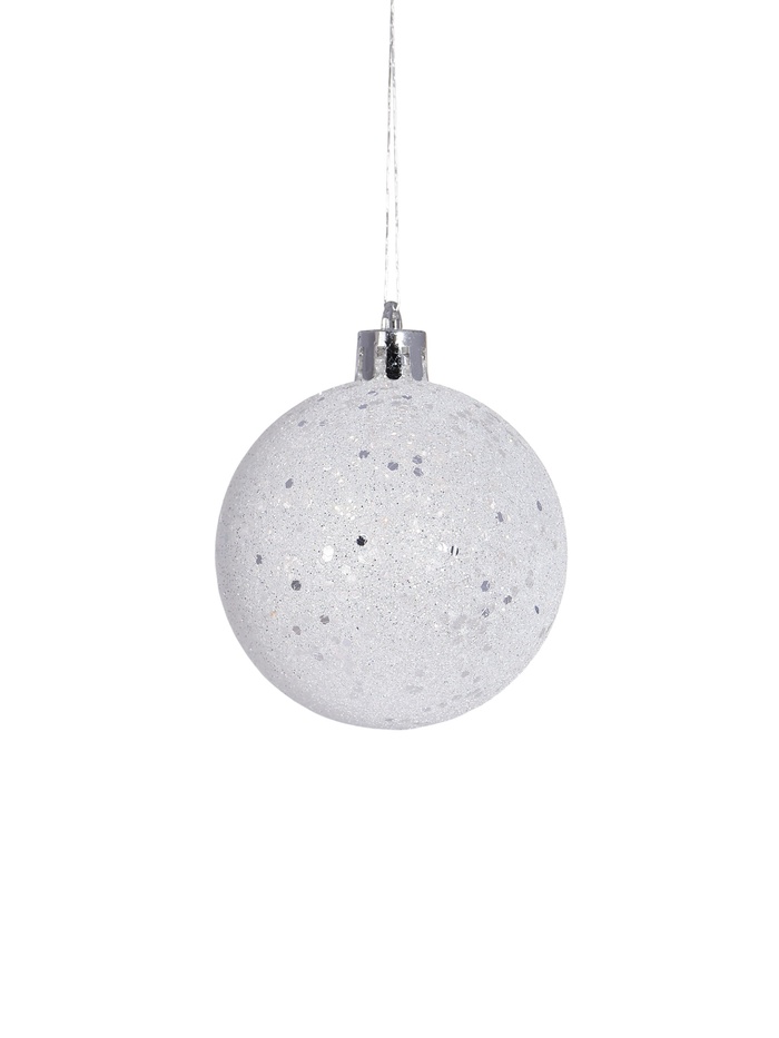 Белые новогодние шары с рисунком — это сочетание зимней сказки и современного дизайна. Набор из 12 пластиковых игрушек диаметром 6 см украшен узорами, вдохновлёнными звёздным светом и зимним небом. Такие украшения подходят для классического, скандинавского, датского и ар-деко стиля. Они добавляют праздничному интерьеру глубину, текстуру и лёгкую магию без излишней пестроты.