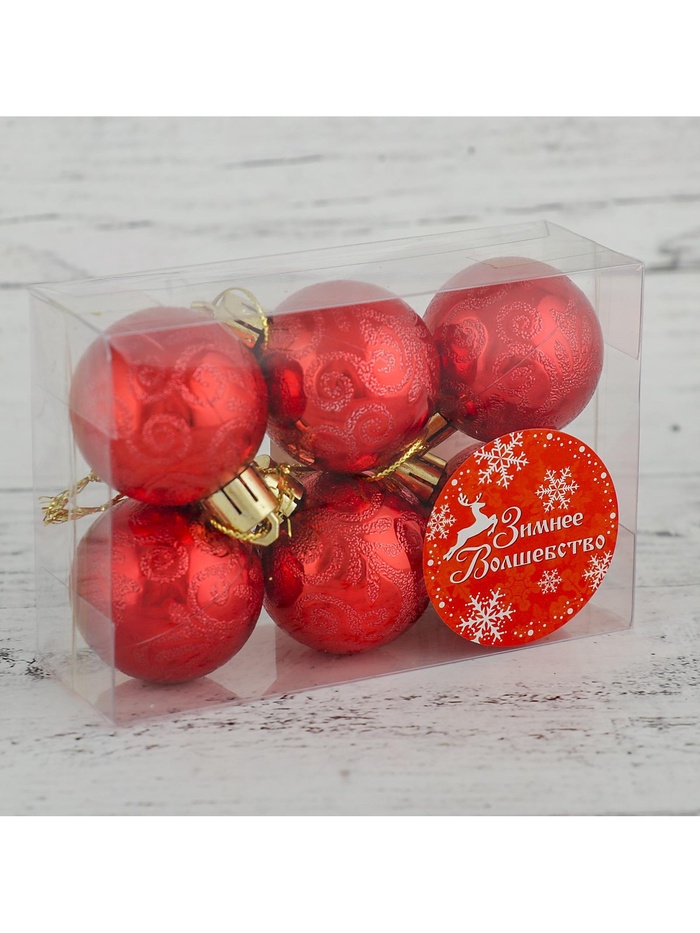 Новогодние шары красного цвета, 4 см в диаметре, упакованные в набор по 6 штук — это базовый элемент праздничного декора. Их глянцевая поверхность и насыщенный оттенок делают ёлку яркой и завершённой. Такие игрушки подходят под разные стили оформления: от «Новогоднего барокко» до скандинавского минимализма.