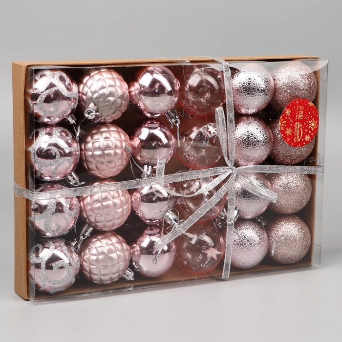 Набор розовых шаров диаметром 4,5 см с узорами в стиле шебби-шик создаст нежное и уютное оформление для новогодней ёлки. Эти пластиковые украшения с тонкими морозными орнаментами добавят изящества и легкости в праздничный интерьер.