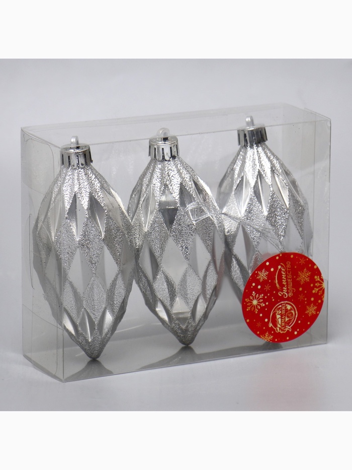 Этот набор превращает ёлку в угол вашей истории о подарках, тихом волшебстве и предпраздничном ожидании. Серебристый оттенок и строгая форма работают вместе, чтобы передать дух торжества и добрую зимнюю гармонию. Используйте их как центральные элементы или рядом с другими игрушками — одинаково мягко усиливая атмосферу праздника и домашний уют.