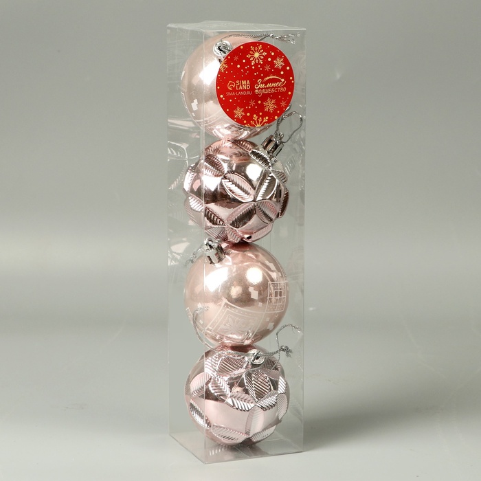 Ёлочные игрушки «Новогодние забавы», шары новогодние, d=5.5 см, набор 4 шт., ромб цветок геометрия, розовый