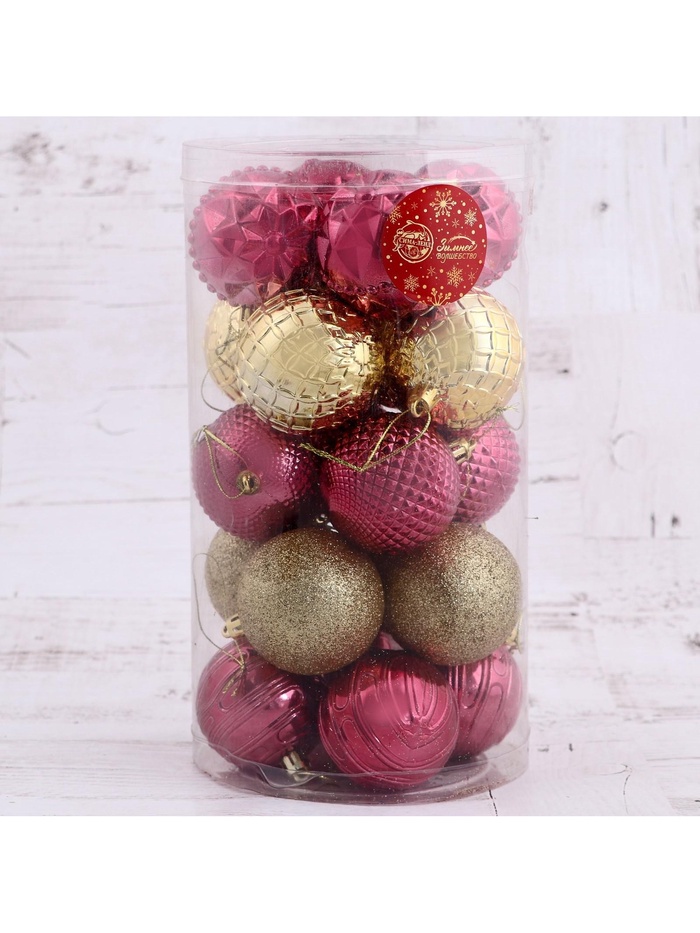 Эти шары создают образ Нового года, где важны не только традиции, но и современная эстетика. Бордовый и золотистый цвета работают вместе, чтобы сделать ёлку частью вашей зимней истории. Используйте их как основу или как акцент в уже существующем декоре — они одинаково хорошо передают атмосферу зимнего торжества.