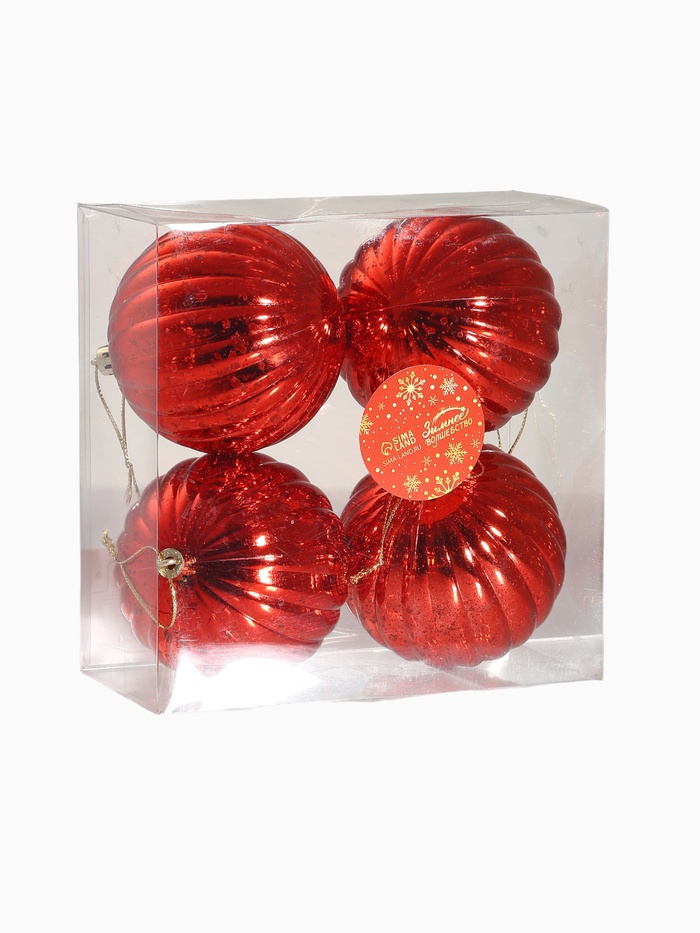 - Комплект из 4 шаров диаметром 8 см, оптимальный размер для создания выразительных акцентов на ёлке.