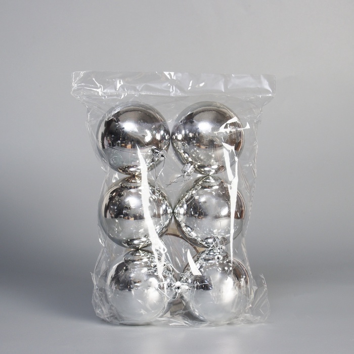 Ёлочные игрушки «Винтажный глянец», шары новогодние, набор 6 шт., d=8 см, серебристый очаровательно смотрятся с новогодними игрушками в виде бантов и цветов. Превратите новогодний интерьер в серебристую сказку.