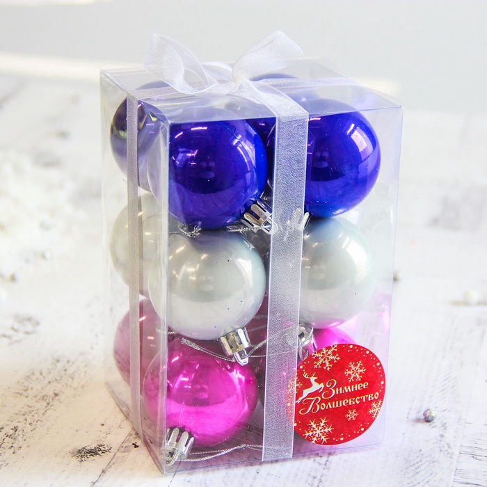- Комплект — 12 украшений, достаточно для создания плотной и гармоничной ёлочной композиции в домашнем или офисном интерьере.