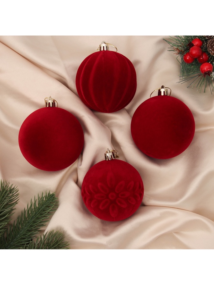 Эти шары подходят тем, кто ценит минимализм в оформлении, но не готов отказываться от новогоднего настроения. Красный цвет задаёт тон всему декору, а крупный размер делает каждую игрушку заметной на ёлке. Такие украшения легко комбинировать с белыми, золотыми или деревянными элементами, создавая уютную зимнюю атмосферу. Пластик обеспечивает долговечность — они останутся частью вашего праздника на многие годы.