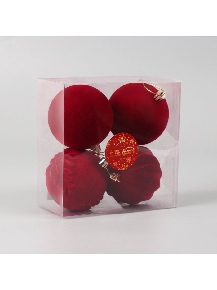 Новогодние шары насыщенного красного цвета — это яркий и лаконичный акцент для праздничной ёлки в скандинавском или фьюжн-стиле. Четыре пластиковые игрушки диаметром 8 см станут стильным элементом декора, добавляя интерьеру тепла и торжественности без излишней вычурности.