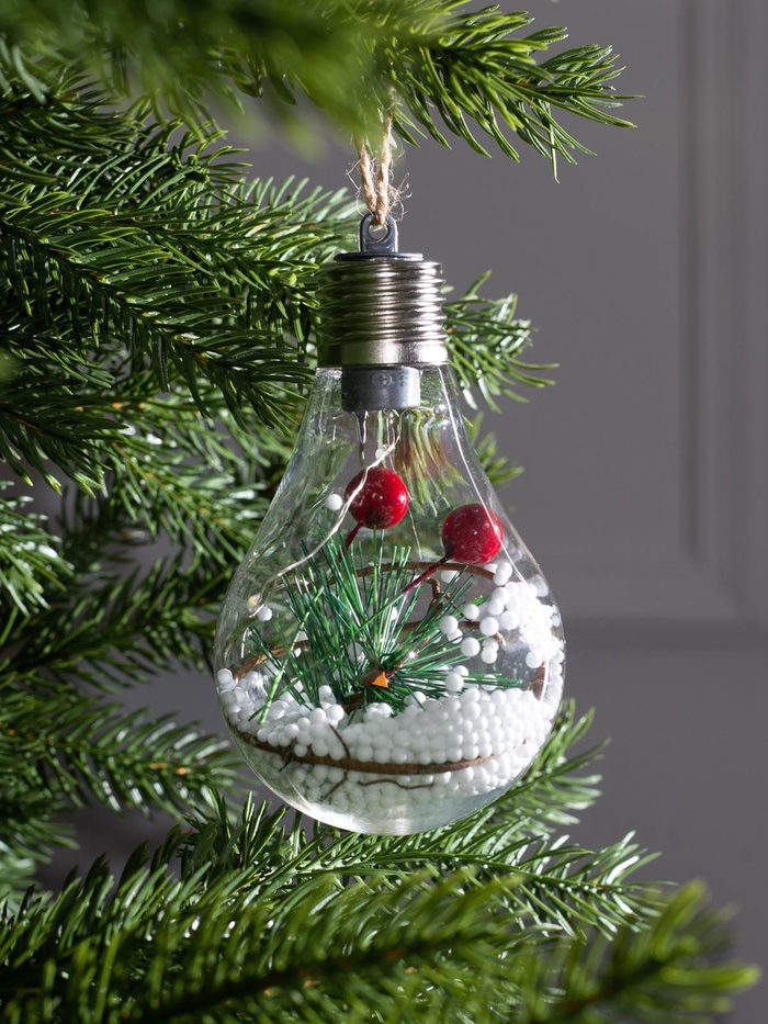 Новогодними игрушками традиционно украшают пушистые елочки, окна и ветки деревьев на улице, ведь переливы белых огоньков вселяют в сердца нотки очарования и радости. Ёлочные шары оригинально выглядят в зимнем декоре. Теплые огни притягивают взгляд, наполняют сердца ощущением волшебной сказки и создают вокруг уютно-праздничную атмосферу.
