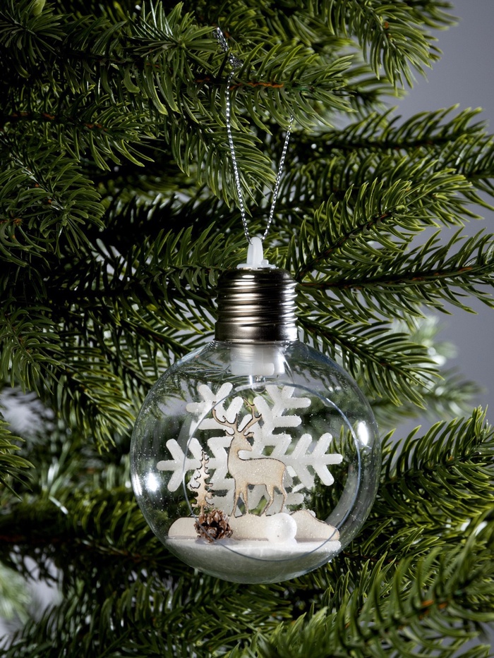 Прозрачный шар диаметром 8 см воплощает в себе изящество скандинавского стиля и зимнюю сказку в каждой детали. Внутри него размещён миниатюрный снежный пейзаж, который оживает благодаря светодиоду с тёплым белым свечением. Такое мягкое освещение создаёт атмосферу уюта и спокойствия, наполняя пространство нежным светом и праздничным настроением.