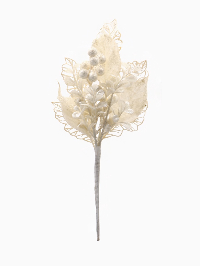 - Форма — веточка с резными листьями, добавляющая композиции легкости и зимней символики.