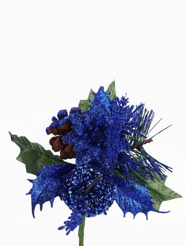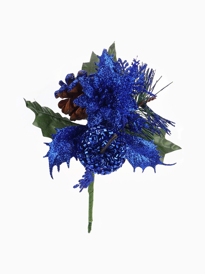 Эта ветка добавляет ёлке и комнате ощущение свежего зимнего воздуха и домашнего тепла. Синие тона и текстурные вставки работают вместе, чтобы сделать ваш дом частью личной новогодней истории. Используйте её как самостоятельный элемент или фоновое дополнение — одинаково хорошо усиливает дух торжества и предпраздничную гармонию.