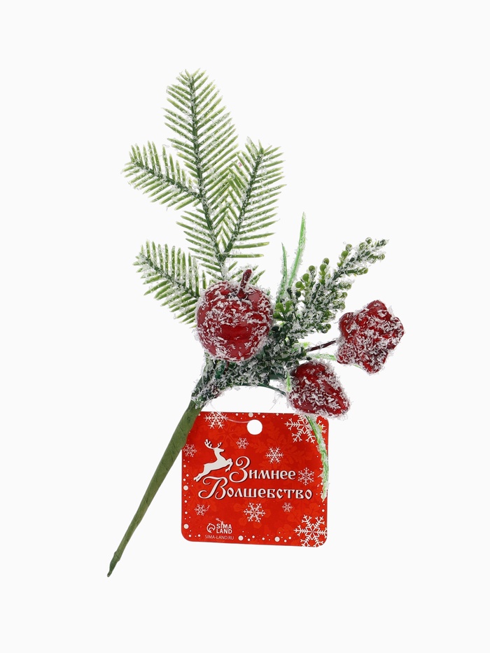 Эта миниатюрная декоративная ветка для новогоднего оформления выполнена в ярко-красном цвете и представляет собой композицию из металла и пластика. Ее высота составляет 15 см. Такой элемент отлично подойдет для создания праздничных украшений в стиле новогоднего барокко или скандинавского минимализма, добавляя в интерьер атмосферу тепла и волшебства зимних праздников.
