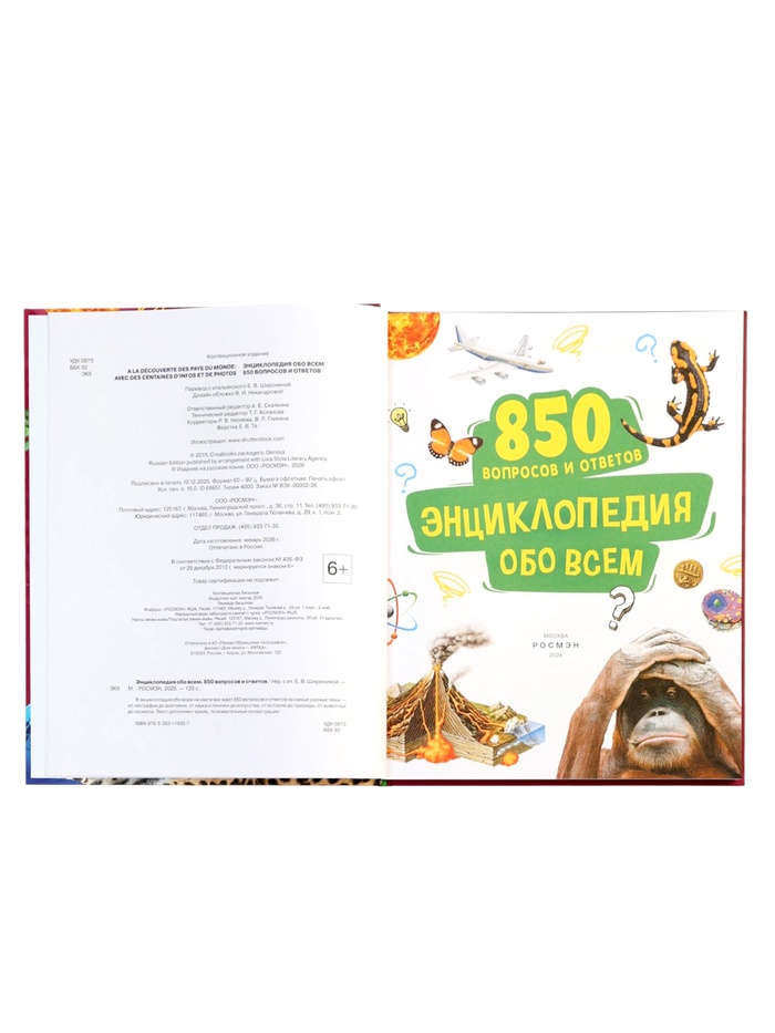 Энциклопедия обо всем в твёрдом переплёте «850 вопросов и ответов», 120 стр.