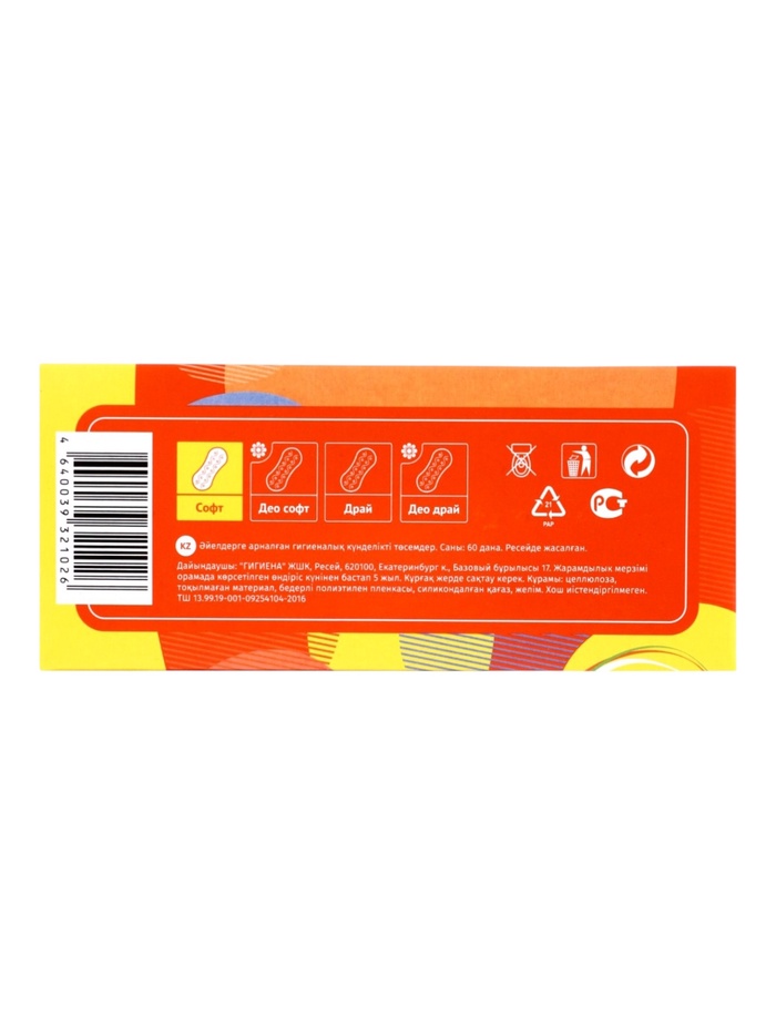 Упаковка на 60 штук позволяет всегда иметь прокладки под рукой дома, на работе или в поездке. Такой объем удобен для длительного использования и экономичен.