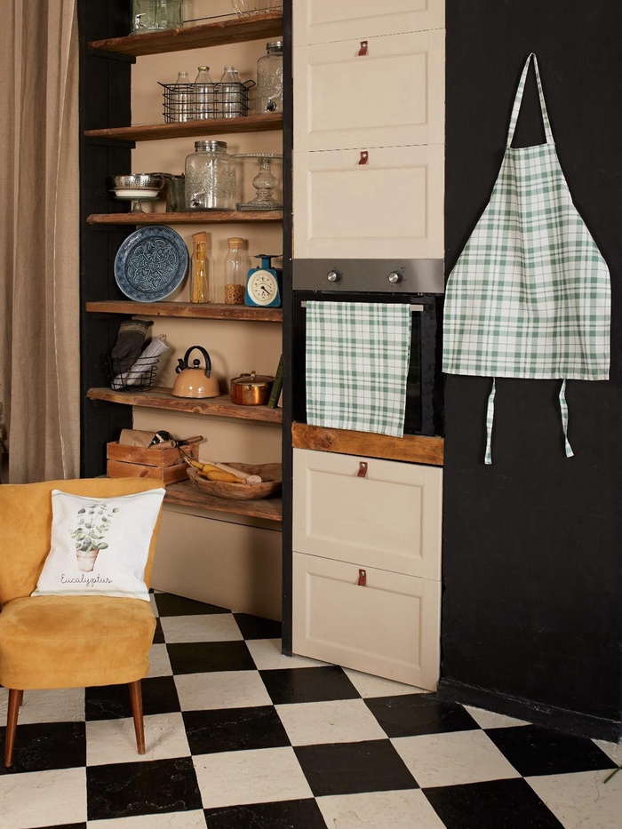Фартук «Этель» Eucalyptus (клетка) 60×70 см, 100% хлопок, саржа 190 г/м²