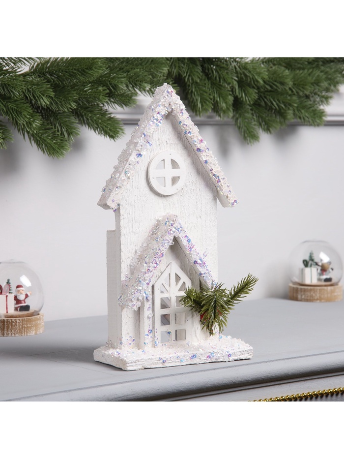 Фигура деревянная «Изба белая», 27×17×6 см, 3 LED, батарейки AAx2 (не в комплекте), свечение теплое белое
