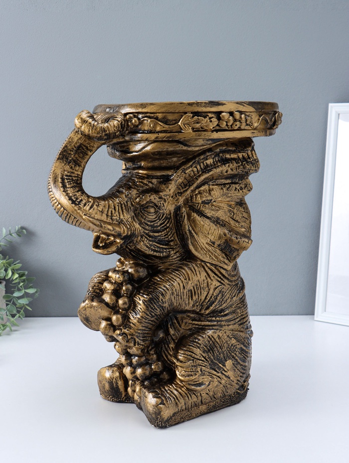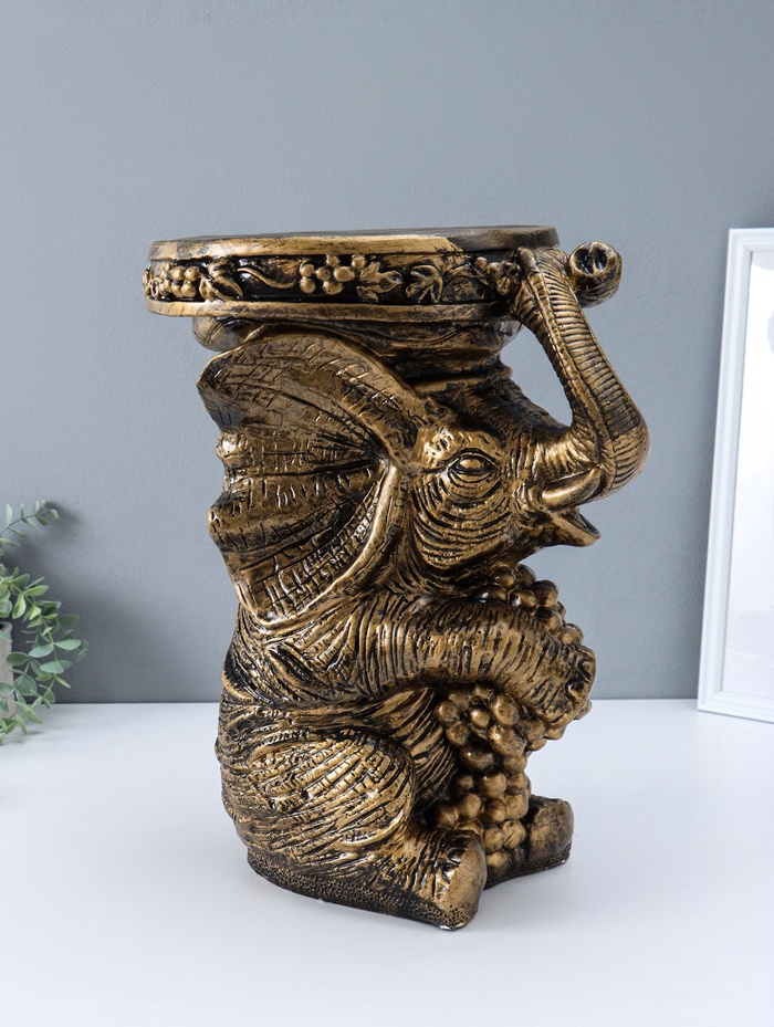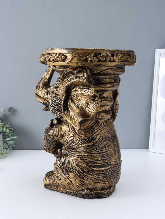 Фигура-подставка "Слон сидя" чёрный с золотом, 44х37х30 см