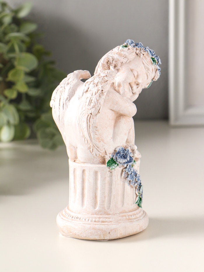 Фигура полистоун "Ангелочек на колонне" 14х7,5х7 см