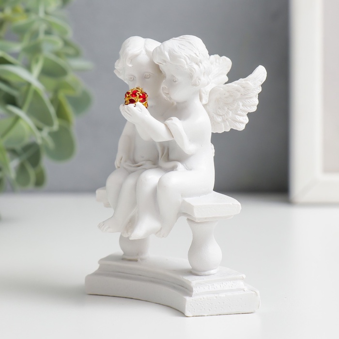 Эта фигурка двух ангелов на скамье создаёт атмосферу уюта и божественного присутствия в доме. Она станет тёплым подарком для близкого человека или изящным дополнением вашего личного пространства.