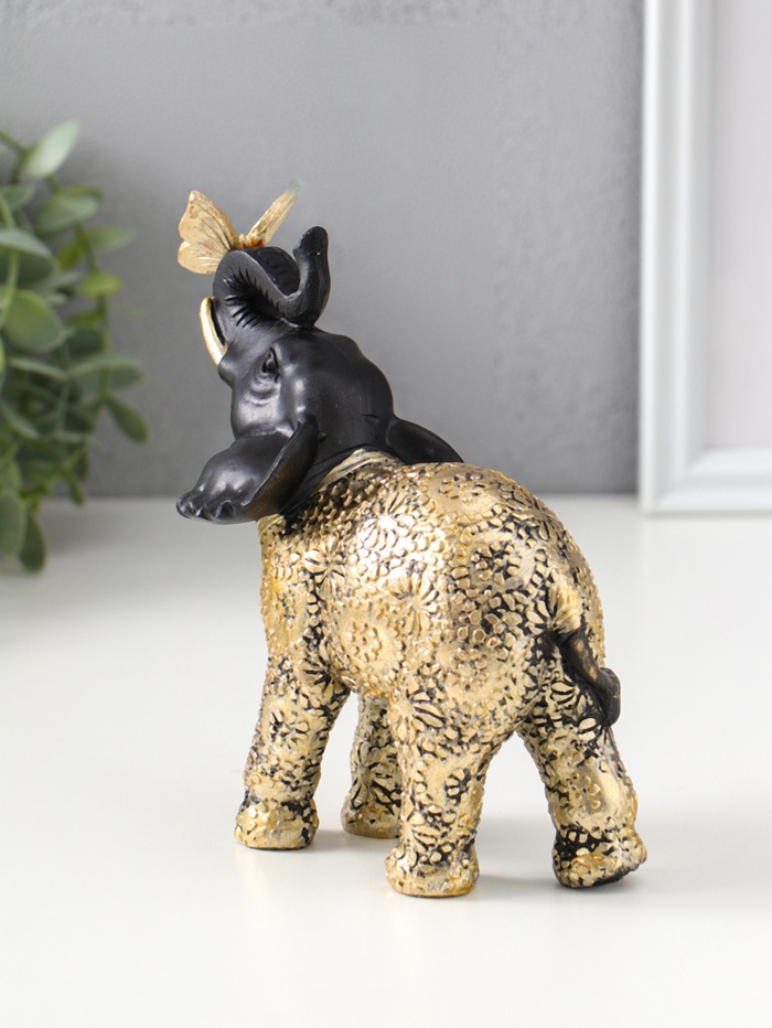 Чёрный слонёнок с золотыми элементами и бабочкой — это статуэтка, приносящая в дом ощущение спокойной силы и нежной удачи. Фигурка из полистоуна с детальной ручной росписью станет лаконичным акцентом в интерьере или глубоким по смыслу подарком на новоселье, день рождения или без особого повода.
