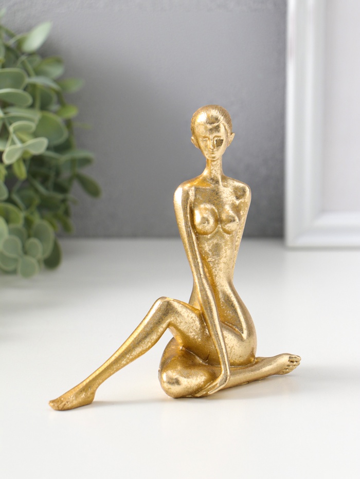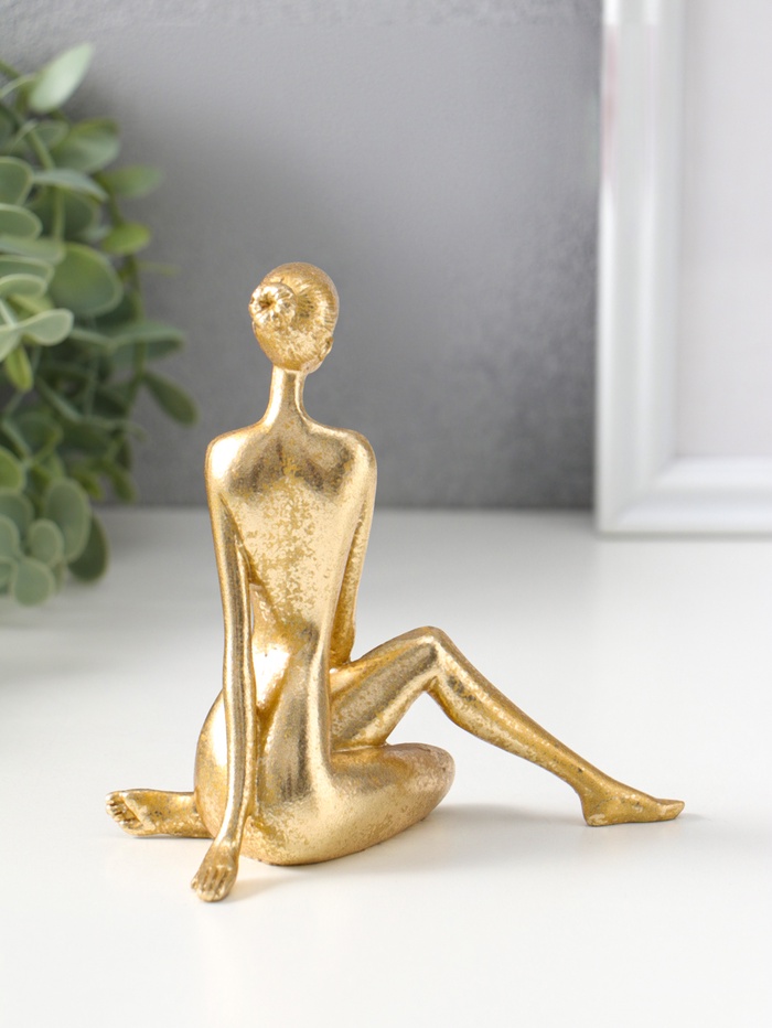 Эта золотистая фигурка йогини — воплощение гармонии и изящной формы. Она запечатлела момент полного умиротворения и внутренней силы, превратившись в статичную, но выразительную скульптуру. Её поза говорит о балансе, а позолоченная поверхность мягко играет со светом, добавляя интерьеру тепла и изысканного акцента.