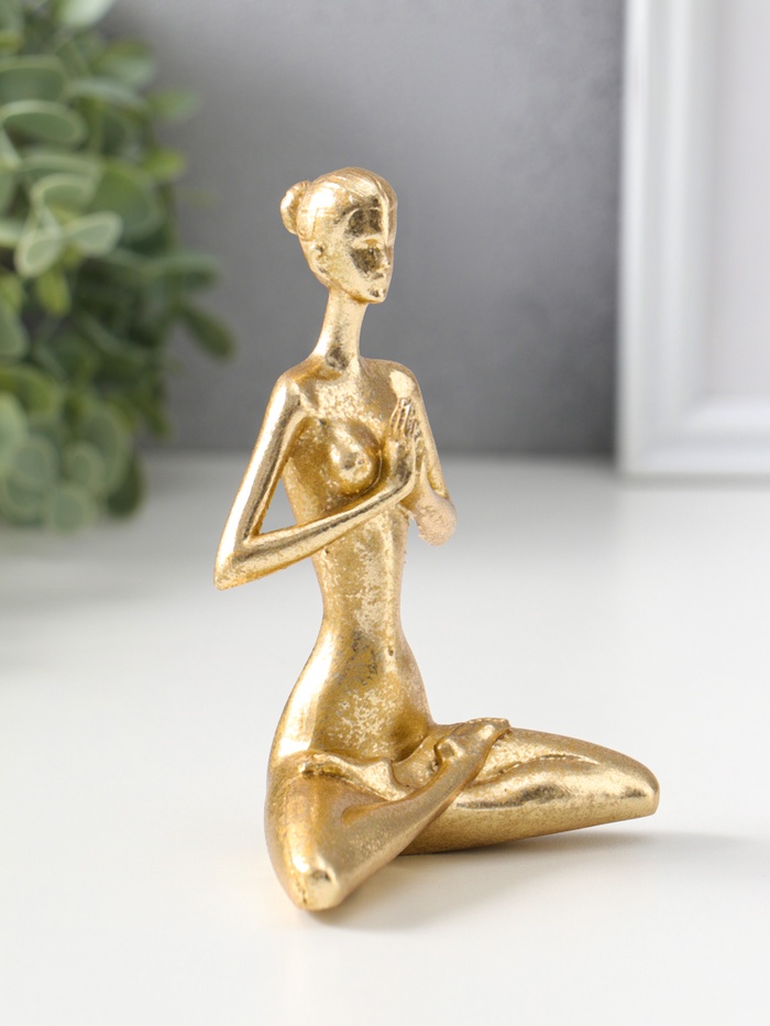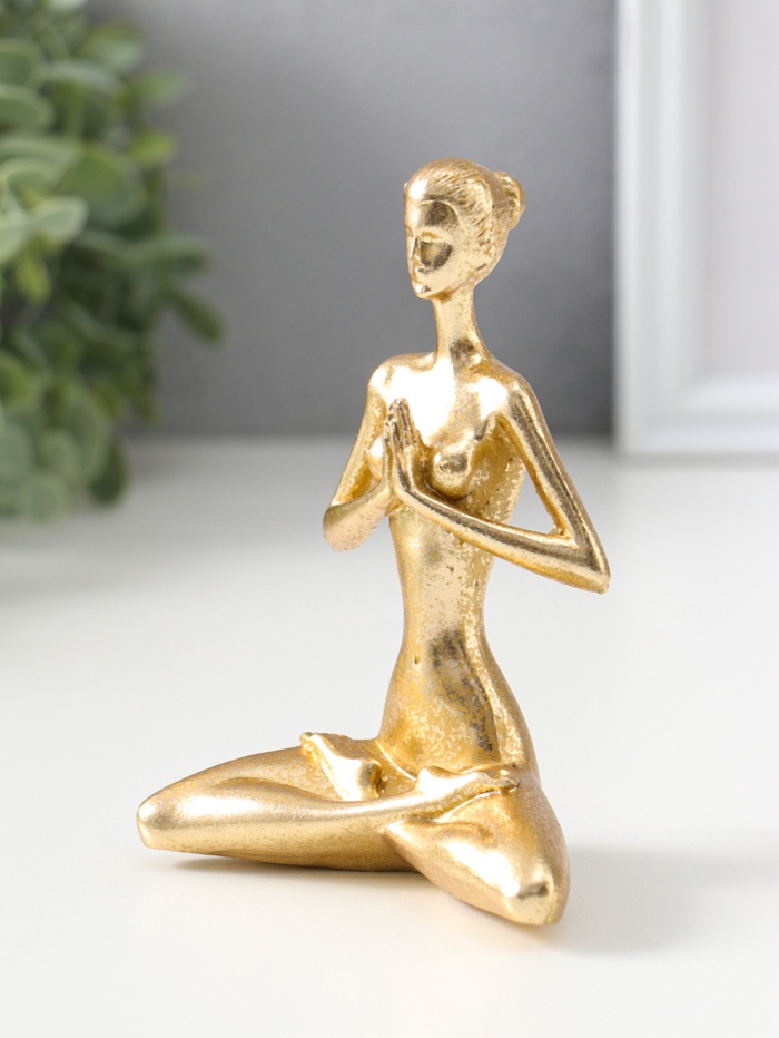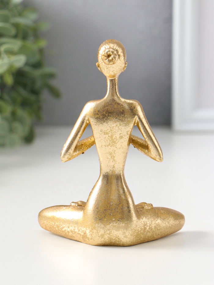 Эта золотистая статуэтка медитирующей девушки — образец внутренней гармонии, воплощённый в материальной форме. Она передаёт состояние глубокого покоя и самопознания, создавая в пространстве особую атмосферу умиротворения. Фигурка из полистоуна с изящной проработкой деталей и благородным золотым покрытием станет не просто украшением, а осмысленным акцентом в интерьере или личном пространстве.