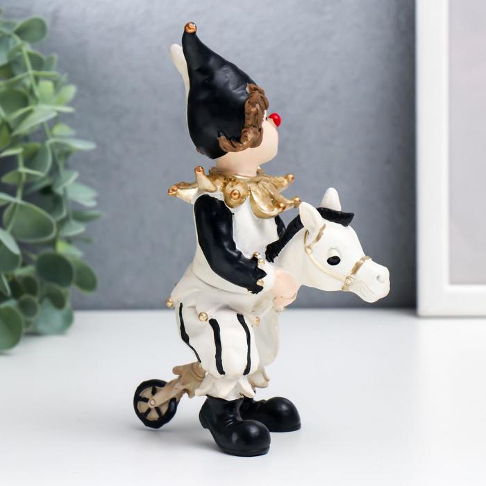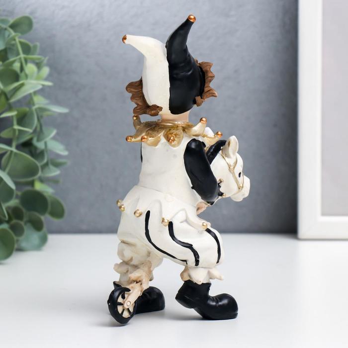 Фигурка полистоун «Скоморох с игрушкой голова лошади», чёрно-белый с золотом, 16.5×6.5×11 см