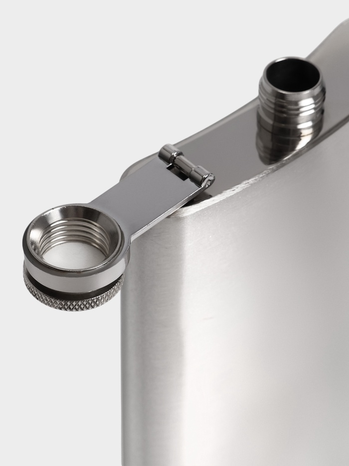 - Стильный внешний вид: серебристый цвет подчеркивает строгость и надежность изделия. Минималистичный дизайн без рисунка делает флягу универсальной.