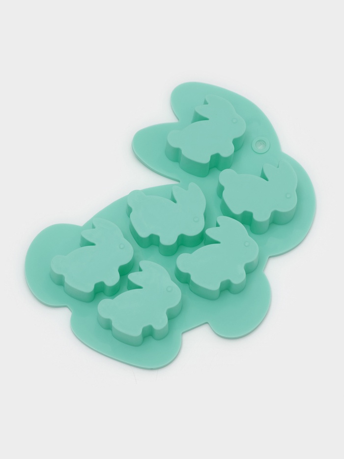 Силиконовая форма «Зайцы» — простой способ создать шесть милых фигурных десертов за один заход. Ячейки в виде зайчат подходят для шоколада, желе, марципана или мыла ручной работы. Свежий бирюзовый оттенок добавляет кухне весеннего настроения, а компактный размер легко помещается в морозильную камеру или на противень.