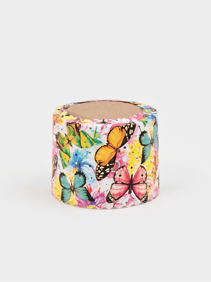Бумажная форма «Бабочки» избавит от хлопот при выпечке пасхальных куличей. Яркий узор останется на боковине готовой выпечки — и кулич сразу станет праздничным, без дополнительного декора. Пищевая бумага не требует смазывания и легко отходит от остывшего теста.