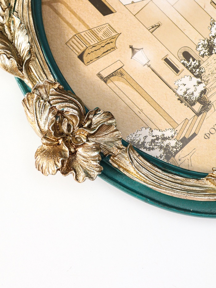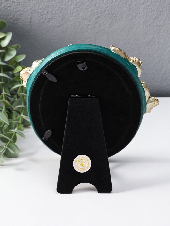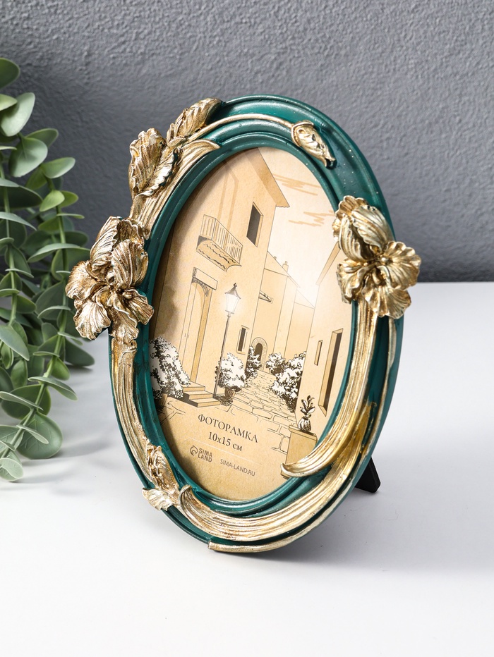 Эта овальная фоторамка из полистоуна — элегантный способ сохранить самый важный кадр. Её дизайн, вдохновленный изящными ирисами, сочетает глубокую зелень с золотыми акцентами, создавая атмосферу утонченности и спокойствия. Идеальный акцент для интерьера или особенный подарок, передающий теплоту и внимание.