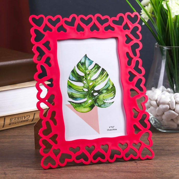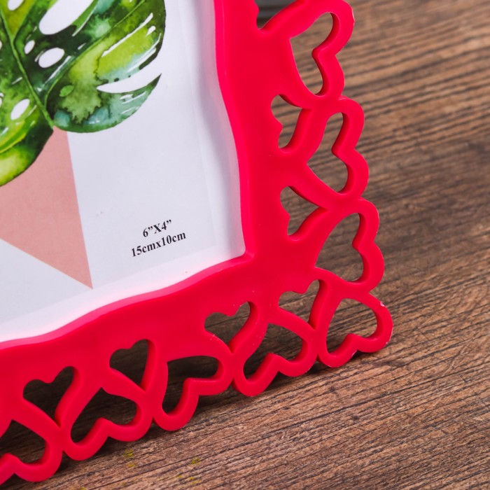 Фоторамка для фото 10×15 см «Сердца», пластик, малиновая, 20.8×16 см