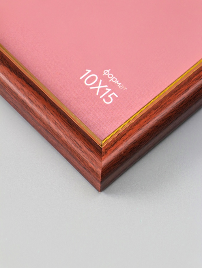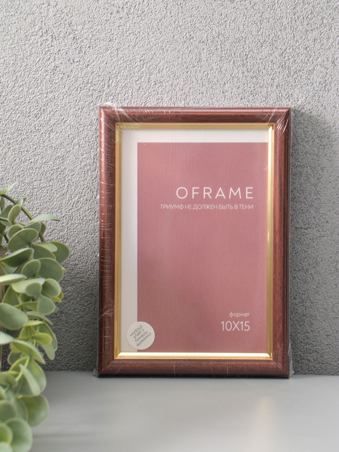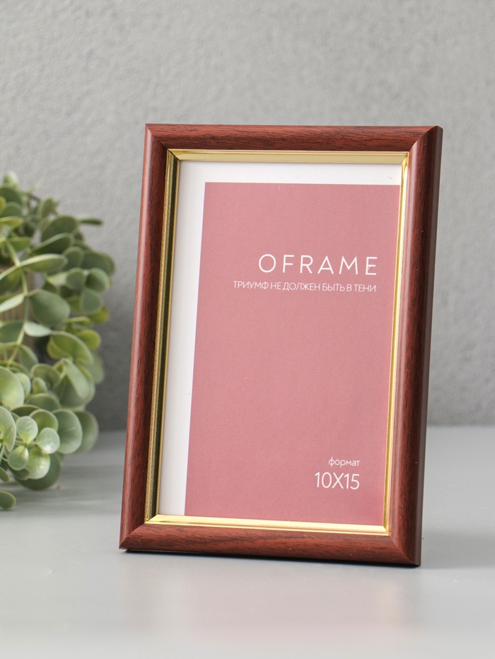 Фоторамка для фото 10х15 см "Oframe", пластик, бук с золотом, (пластиковый экран)
