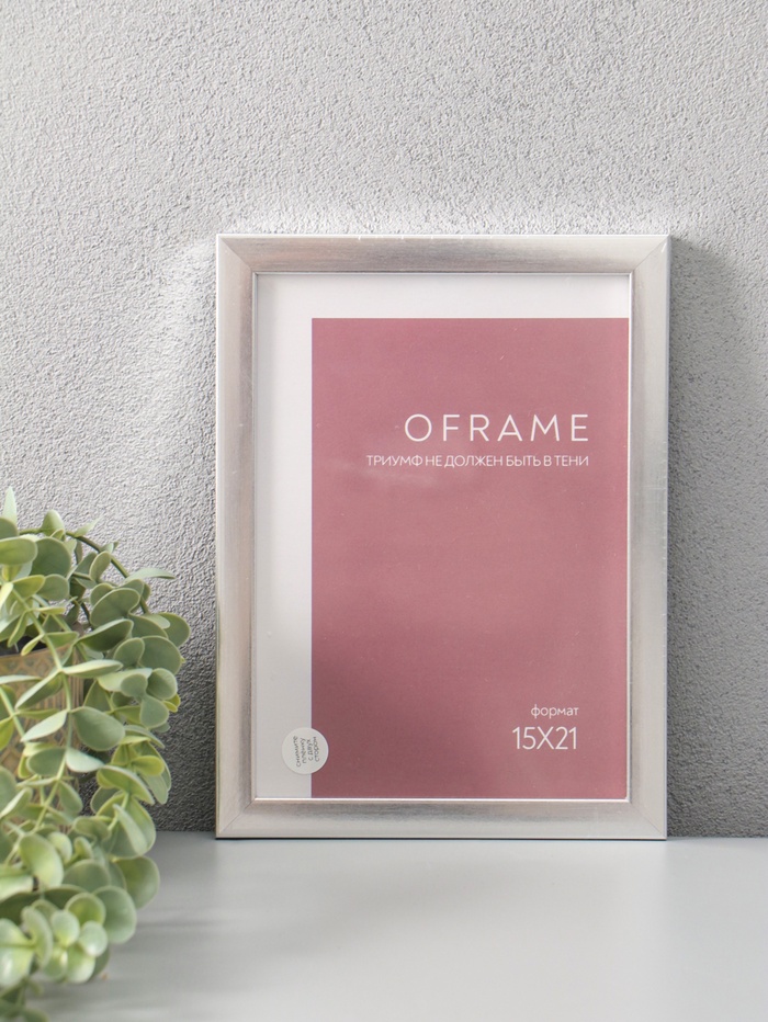 Фоторамка для фото 15х21 см "Oframe", пластик, серебро, (пластик экран)