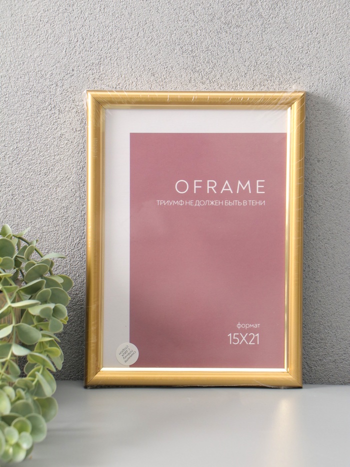 Фоторамка для фото 15х21 см "Oframe", пластик, золотой, (пластиковый экран)